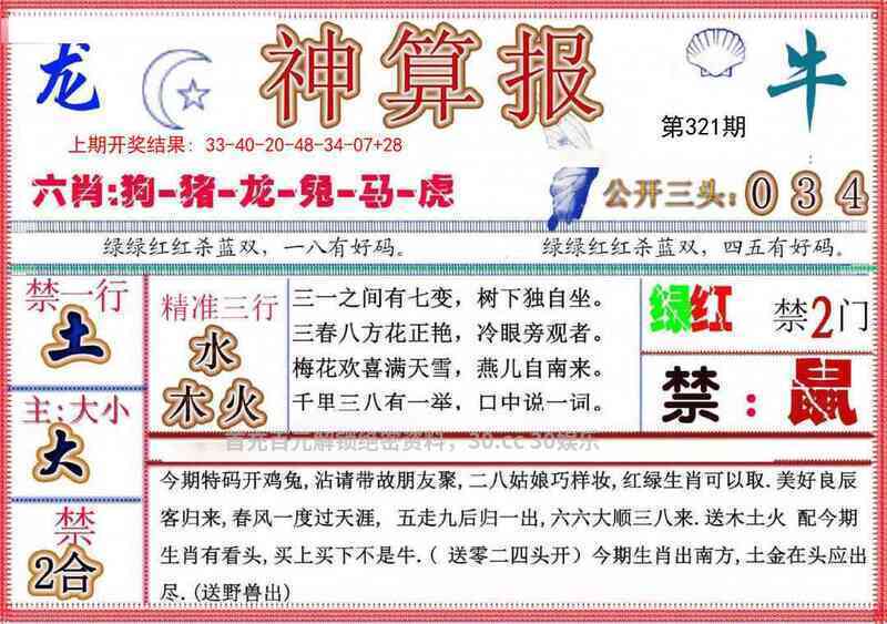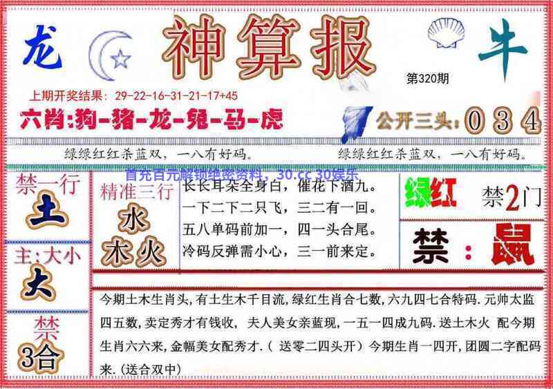 323期:七肖【马龙牛猪狗兔】开:鸡09准